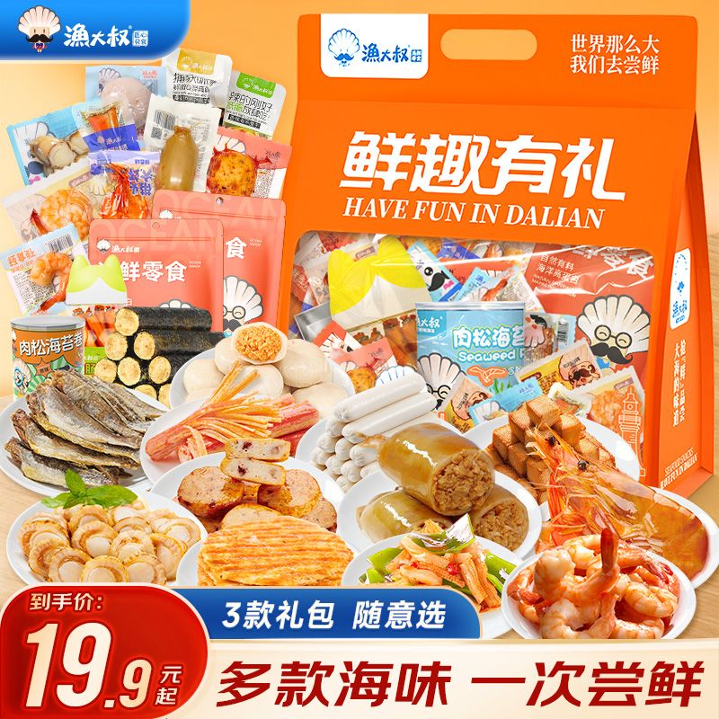 渔大叔海鲜零食大礼包即食虾仁17.9元