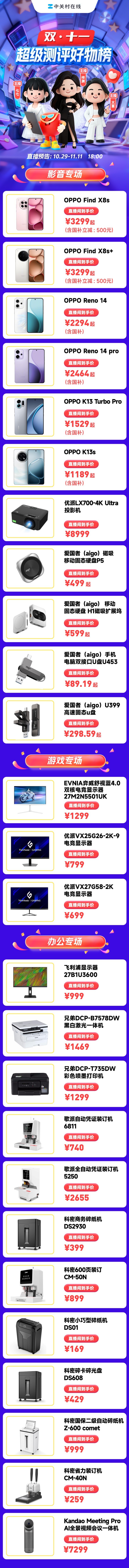 ZOL直播间精选影音、游戏、家电、办公、数码等全品类爆款,涵盖从高性价比单品到高端旗舰的多元化选择。