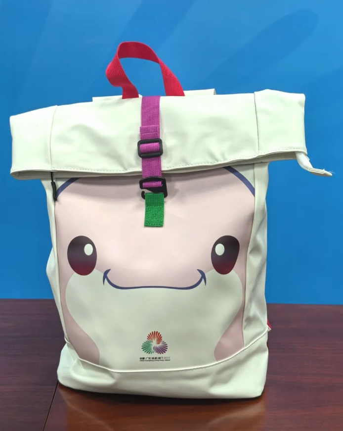 如何让可爱的海豚形象走进千家万户,同时让大家在开幕式结束以后仍能继续使用这个书包,将其打造成广州特色,也是曾振伟关注的问题。他介绍,“广州喜乐包”采用新型防雨材料制作,能从容应对不同天气状况;其翻盖折叠背包造型,突破了传统背包使用模式,可扩容的特性增强了它的实用性。