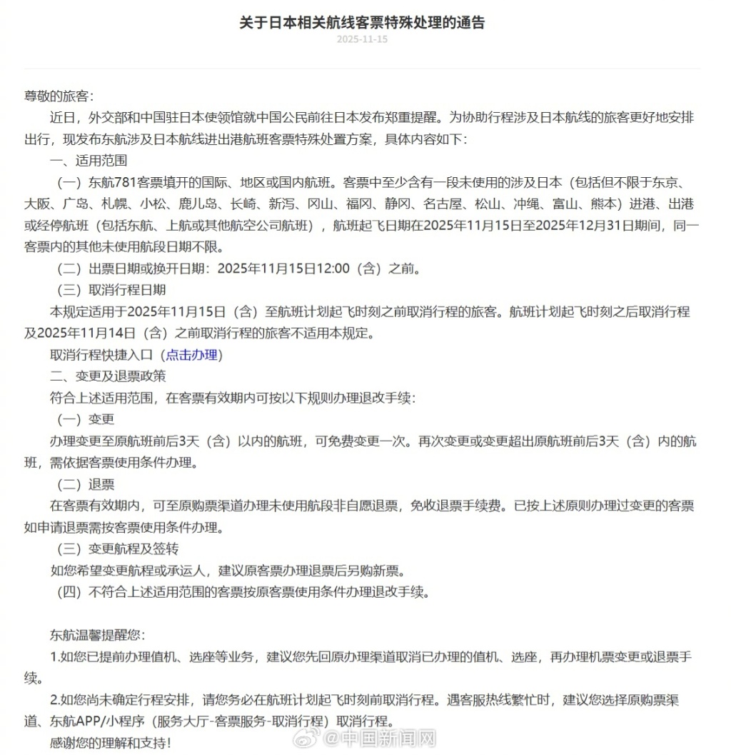 三大航司发布日本航线客票处理通知:机票可免费退改