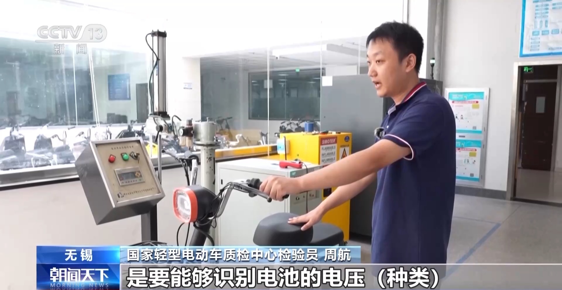 国家轻型电动车质检中心检验员 周航:新国标要求对于控制器来说,能够识别电池的电压(种类),这台车的标称电压是48V,防篡改中规定就是此辆车只能对标称48V的铅酸(电池)能够运行,使用户无法对电池电压进行篡改,增强了整车的安全性。