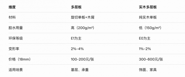 实木多层板与多层板虽同属胶合板家族,但区别如“鱼与熊掌”,前者更偏向自然与高端,后者注重经济与实用。