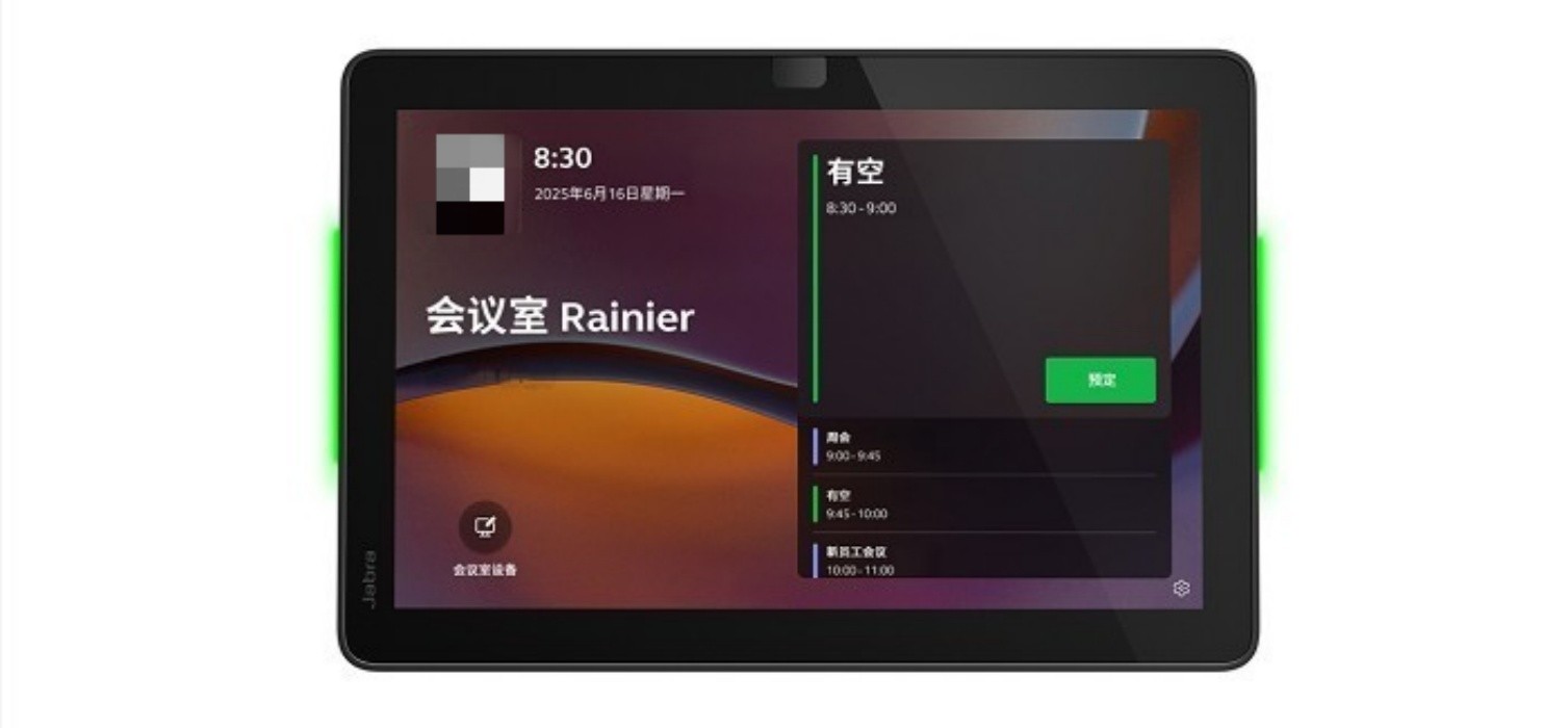 这款全新的日程安排面板有助于减少预订冲突,优化会议空间,并为所有配备 Jabra 设备的会议室打造一致体验。