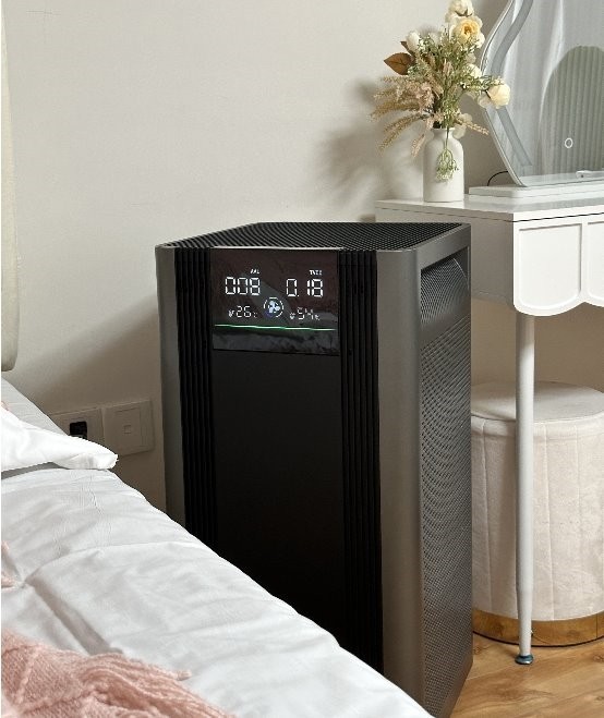 核心技术:双进风双出风设计,结合HEPA滤网和活性炭滤网,有效去除颗粒物、甲醛和TVOC。