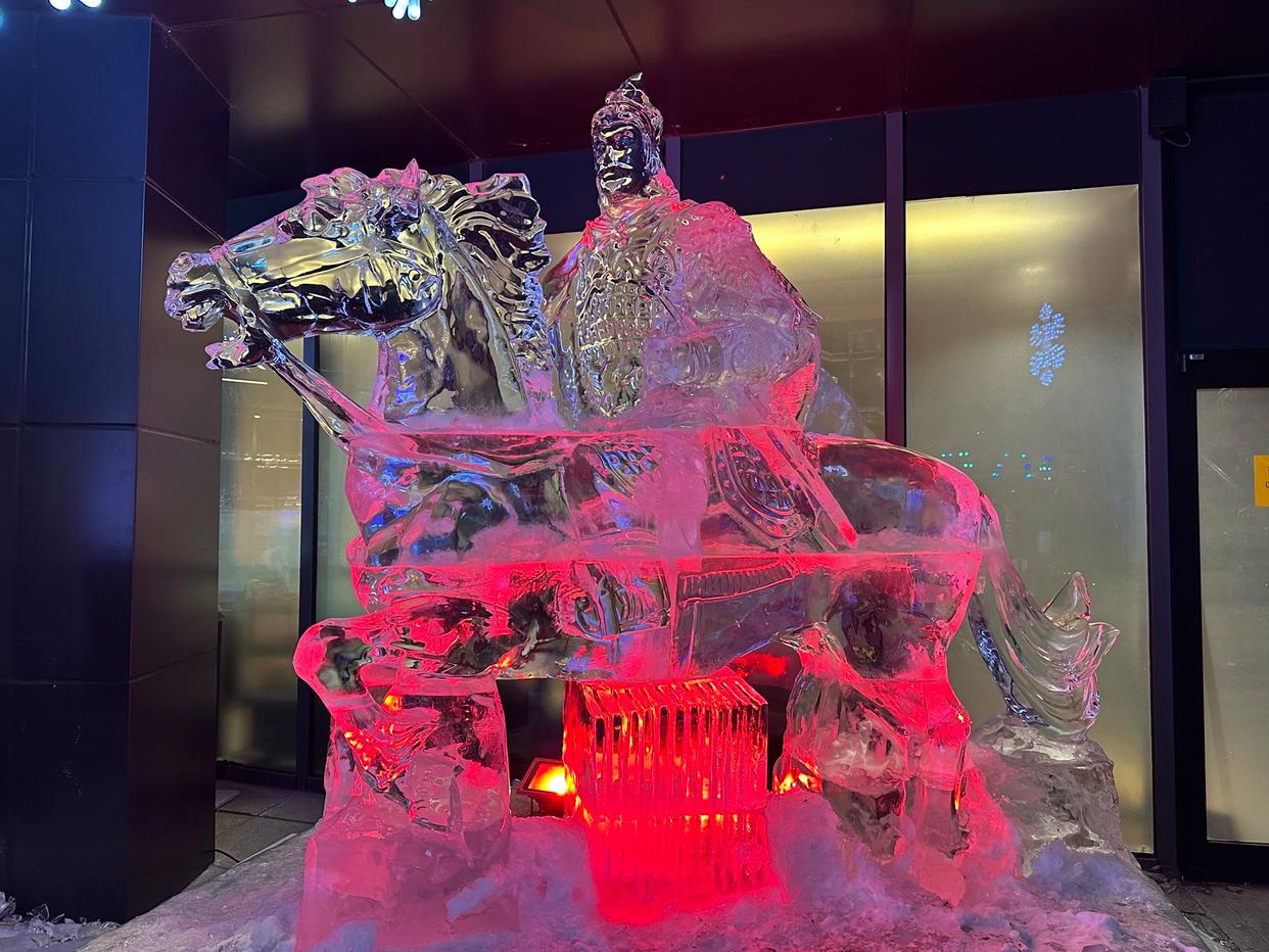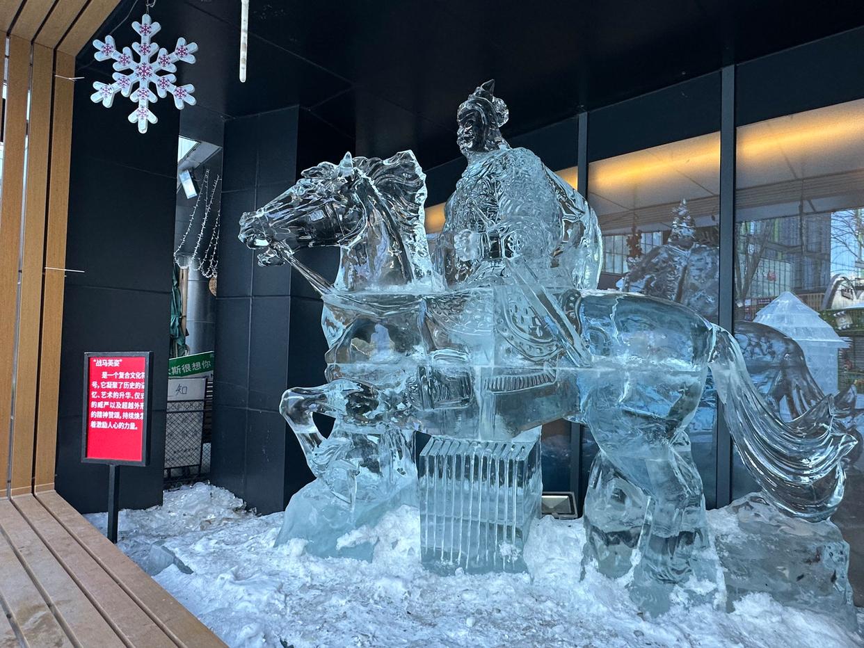 ▲“战马英姿”冰雕