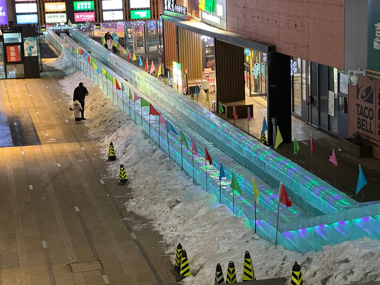 ▲110米长冰滑梯