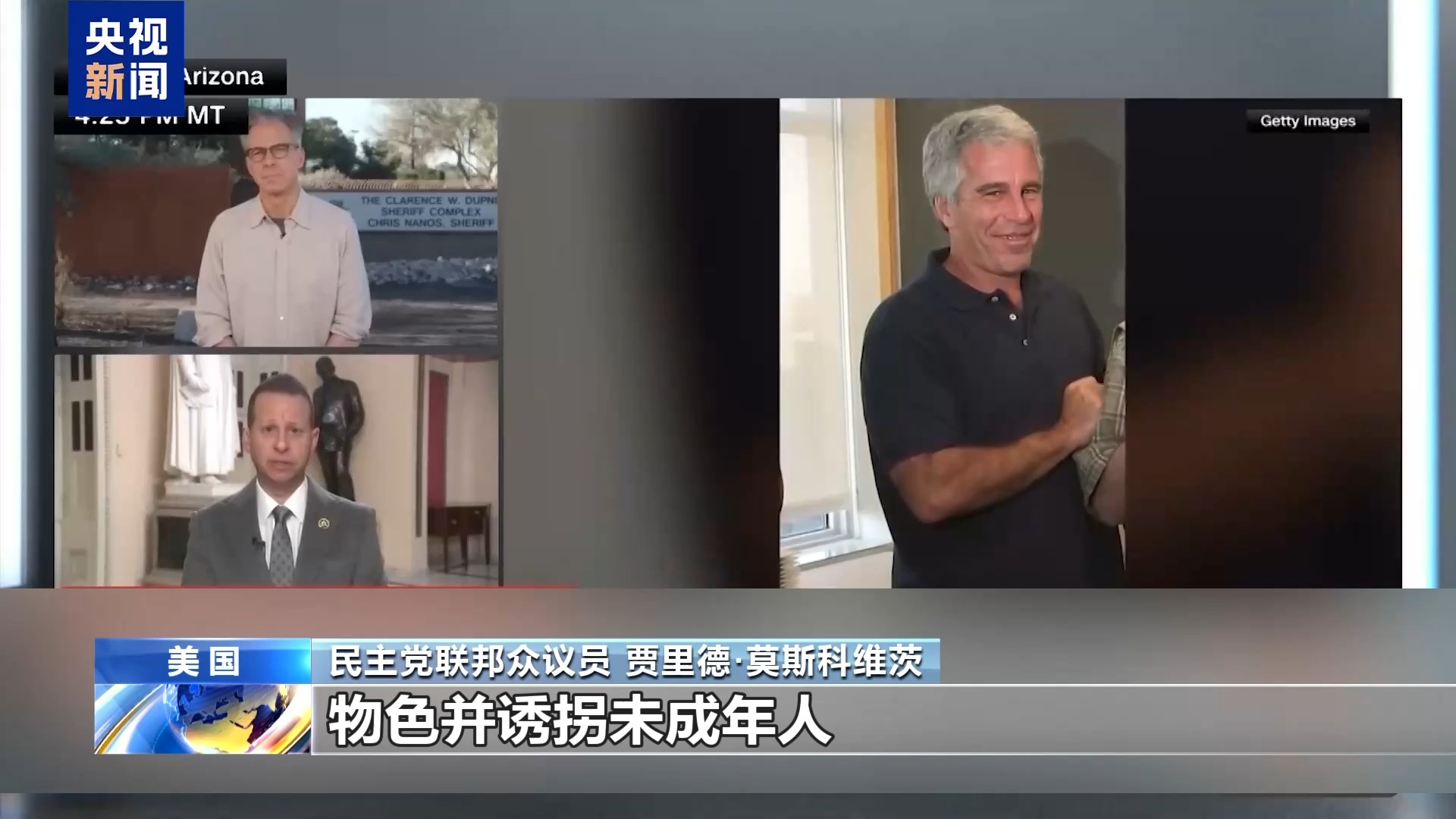 民主党联邦众议员 贾里德·莫斯科维茨:今天我看到了一个全球性的性贩卖团伙。有其他国家的人为杰弗里・爱泼斯坦物色并诱拐未成年人。同伙中有男性,也有女性。