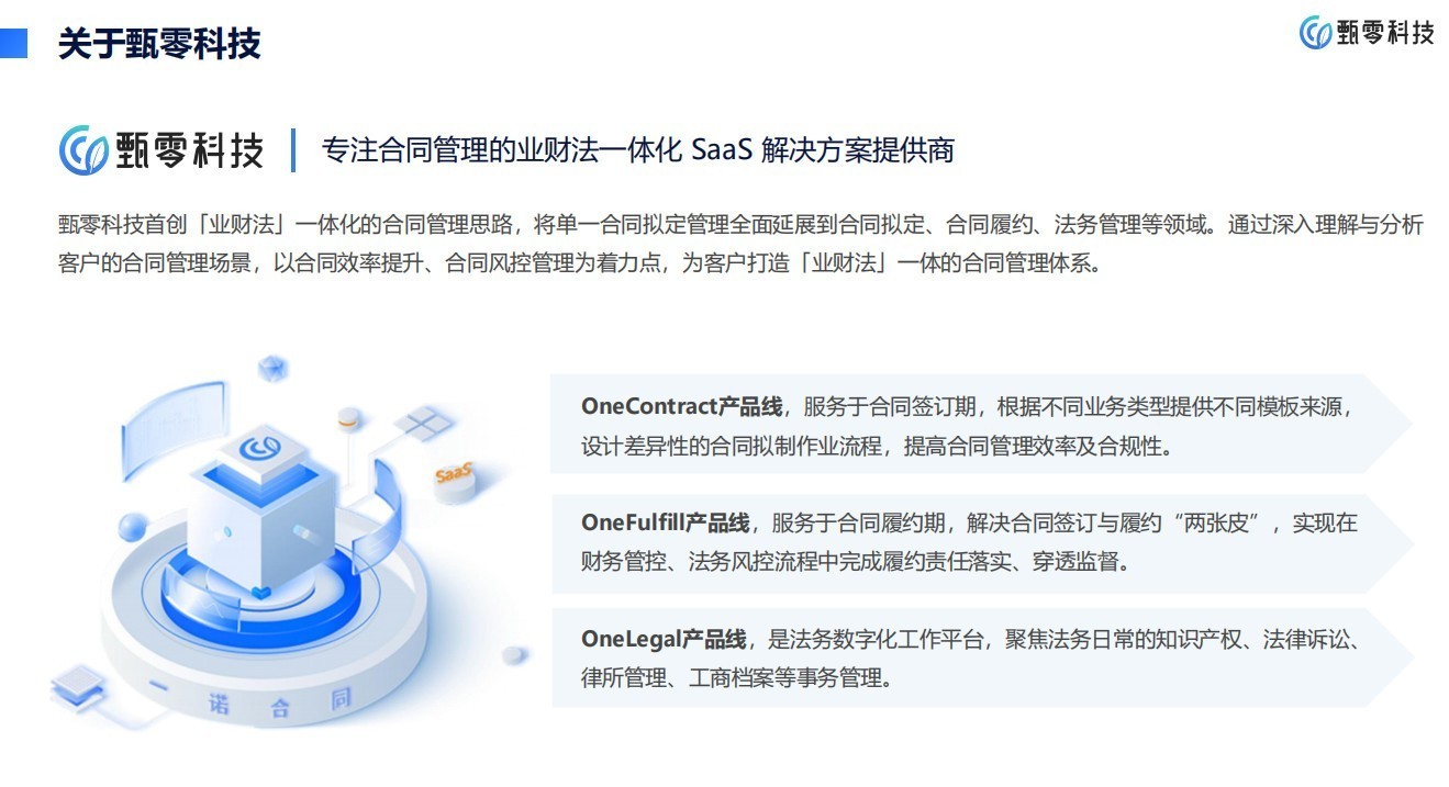 甄零科技:综合型全球业财法一体化的合同管理系统