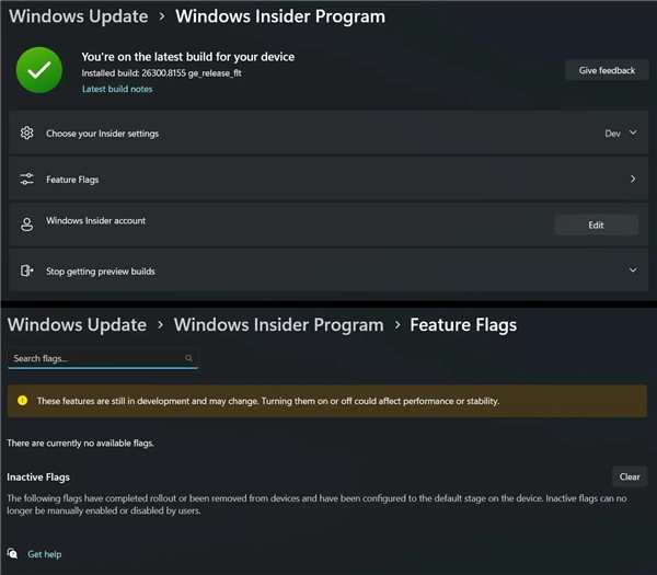 微软为Win11开发功能标识实验界面,用户可自主管理隐藏特性